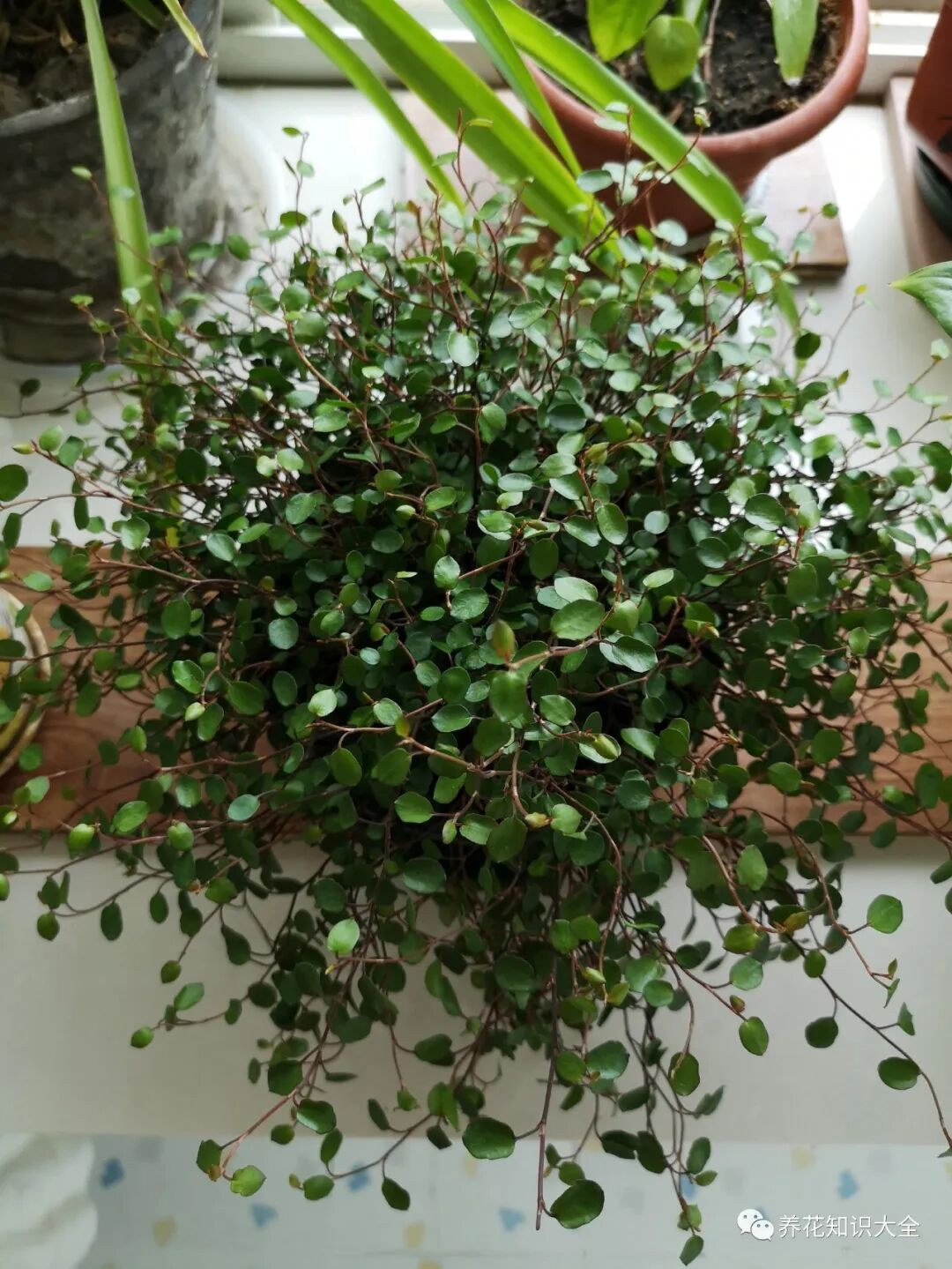 很多花友喜欢叫千叶吊兰为“泡面头”,因为千叶吊兰的枝条软软的,经常会交互缠绕在一起,而且光听名字就知道了,它的叶子非常多,观赏性比较强,一般适合挂起来养护。