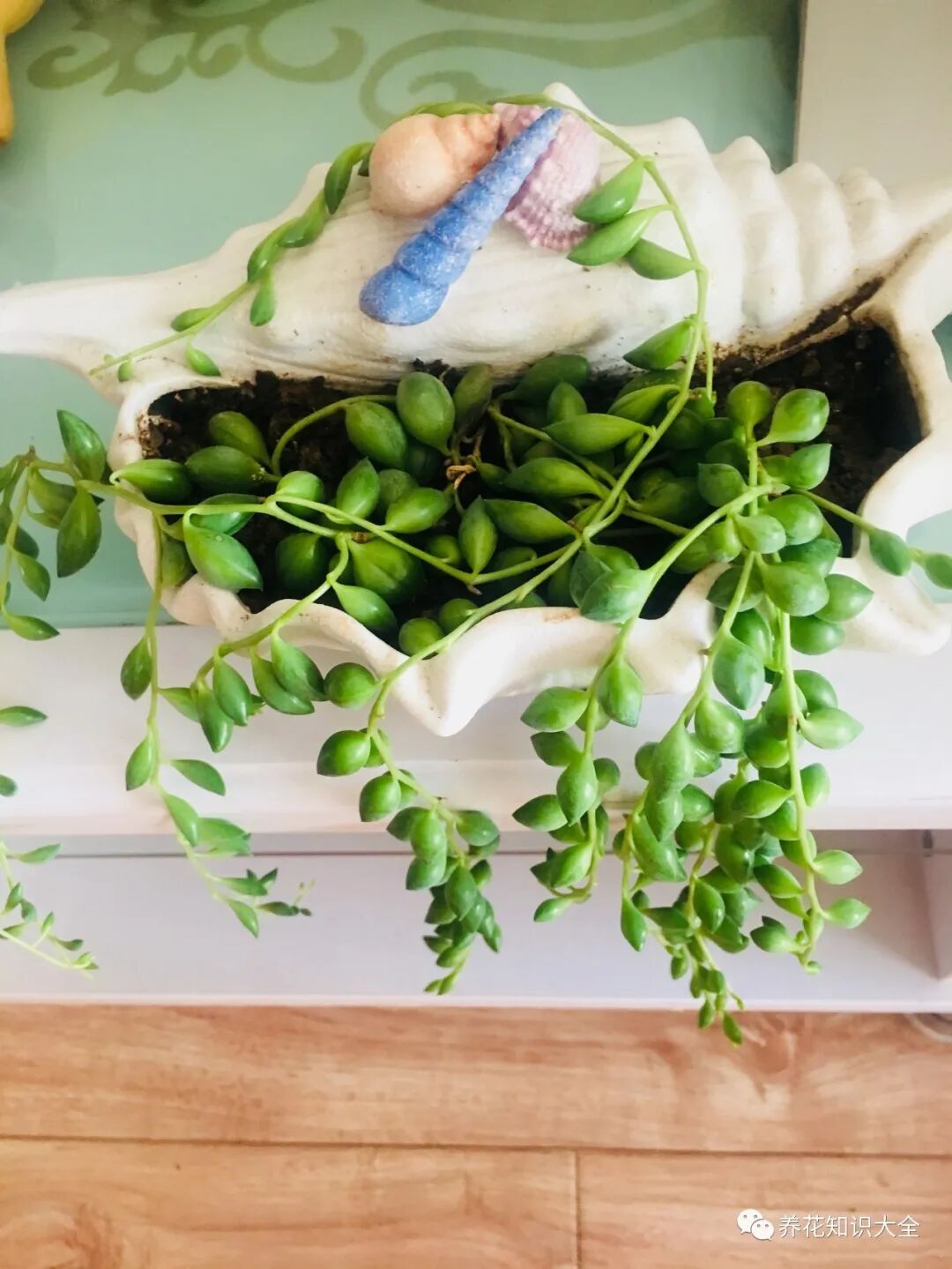 珍珠吊兰就是咱们平时说的多肉佛珠,说白了其实是一种多肉,但是养好了也能变成绿色的小瀑布,挂在阳台上或者花架子上,能给家里增添不少绿意呢~