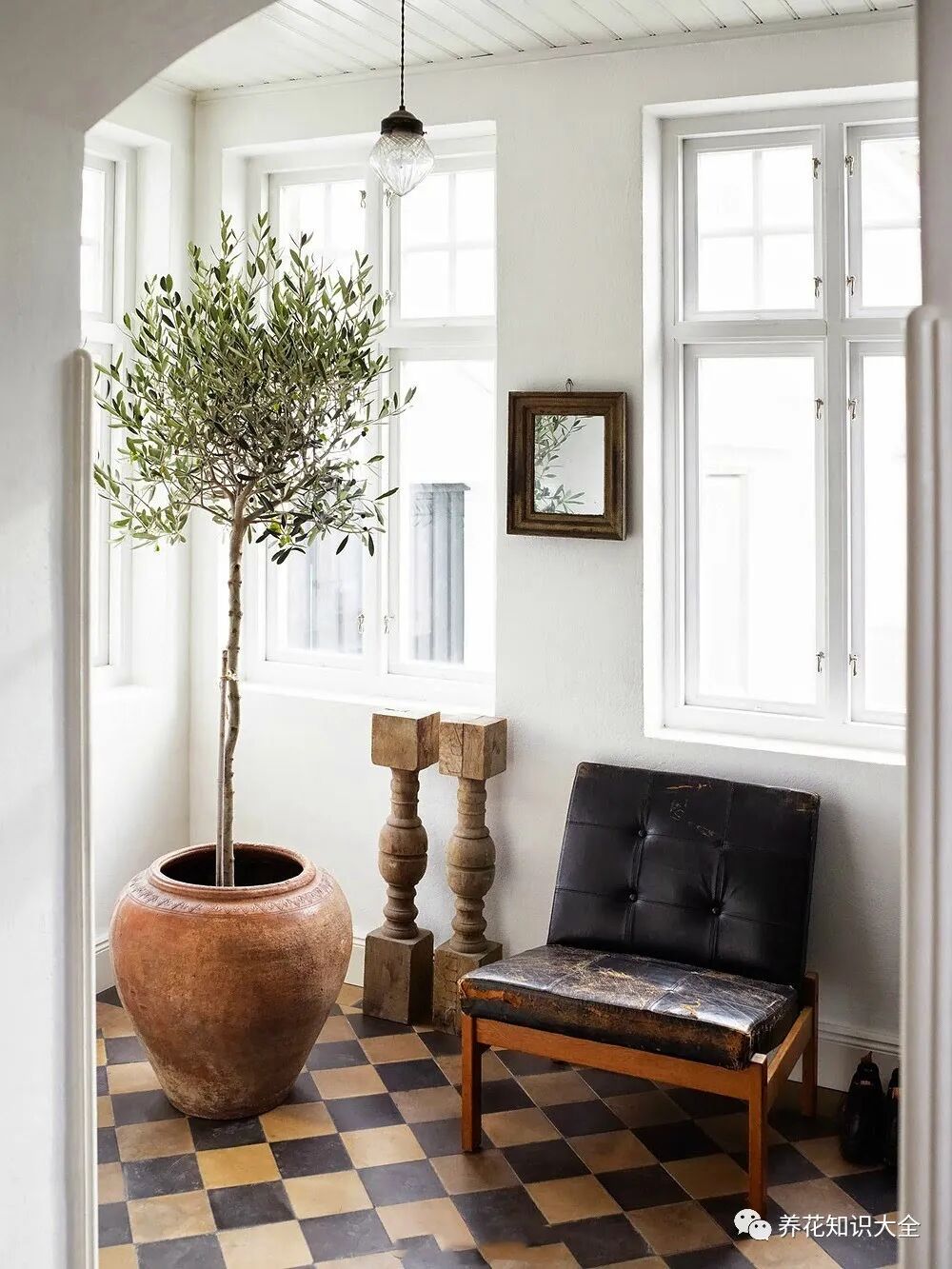 橄榄树的枝干古朴,绿叶细密,是家居装饰的一把好手。用铁桶或坛子作为花盆,和橄榄树的复古感融合得刚刚好。