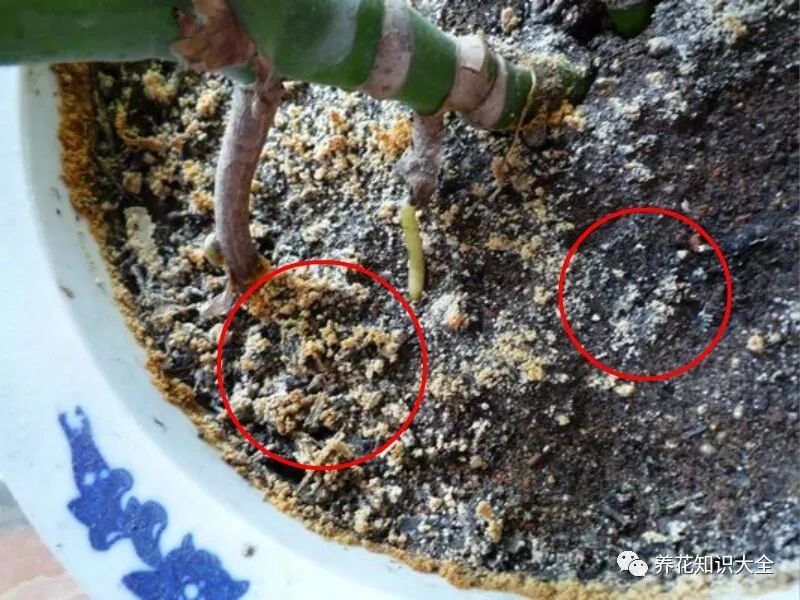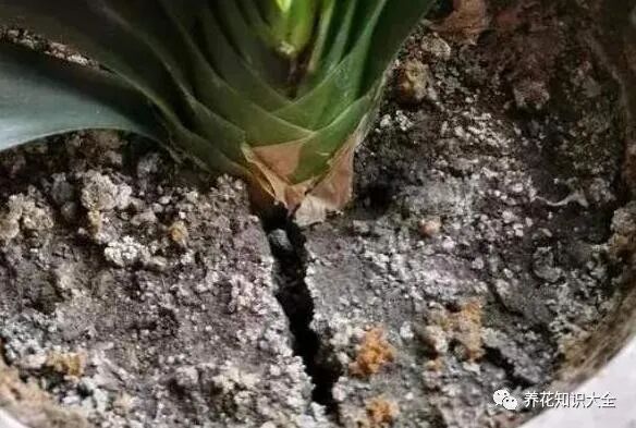 花友们可别不当回事,这些白色结晶会导致土壤板结不透气,浇水浇不透,根部呼吸困难,时间长了,植株就会黄叶烂根!