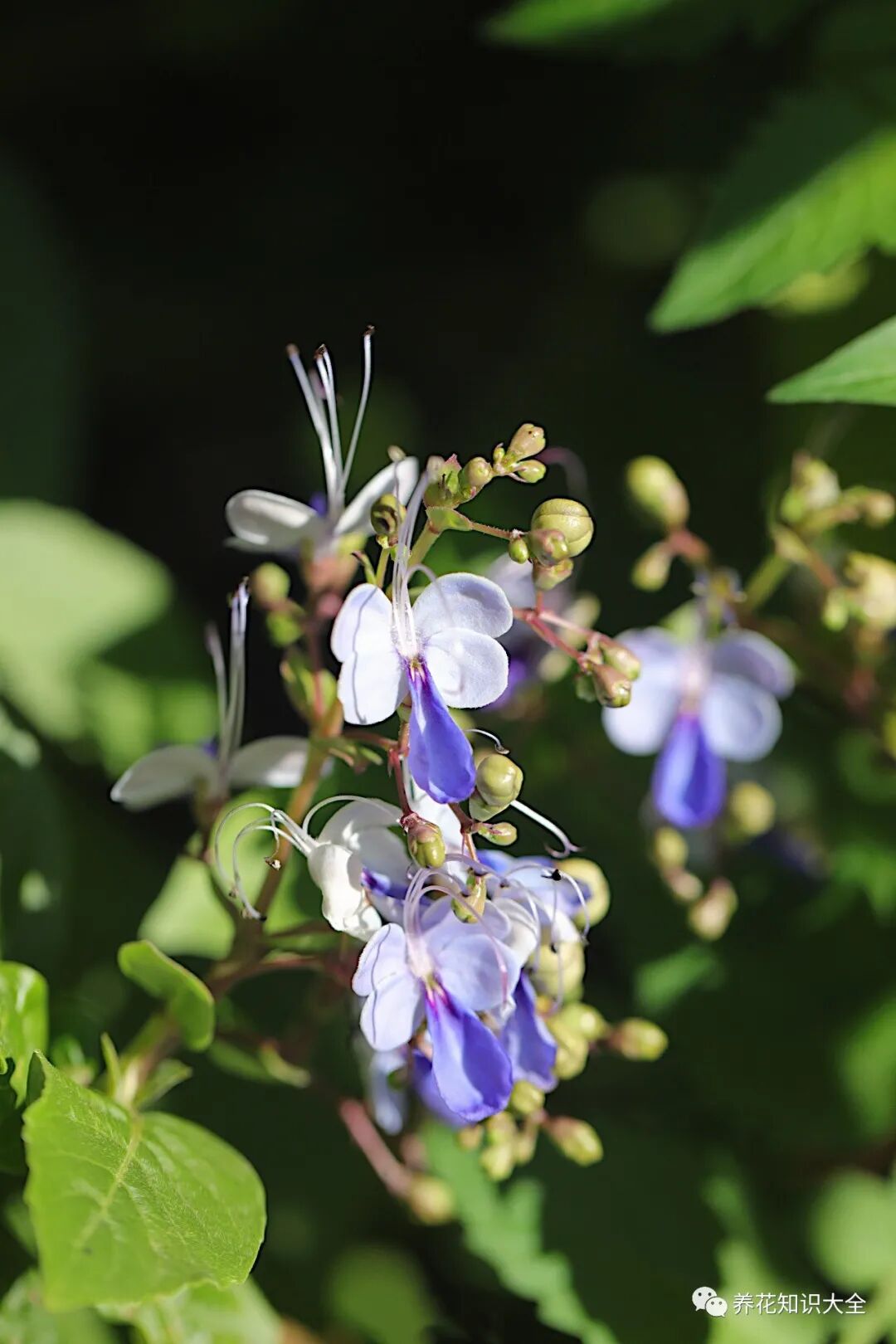 蓝蝴蝶因花得名,开花的时候非常好看,枝头上飞满了蓝色的蝴蝶,活灵活现的,非常清新可爱。而且蓝蝴蝶的花期也很长和蓝雪花差不多,所以每年的5月到11月都可以欣赏到这些漂亮的“蓝蝴蝶”。