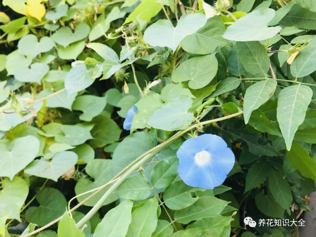 如果家里有庭院的花友,也可以种上一整面墙的蓝色牵牛花,这样它开花的时候一个个周期蓬勃的蓝色小喇叭别提多好看了。