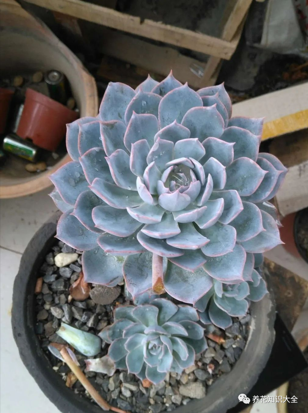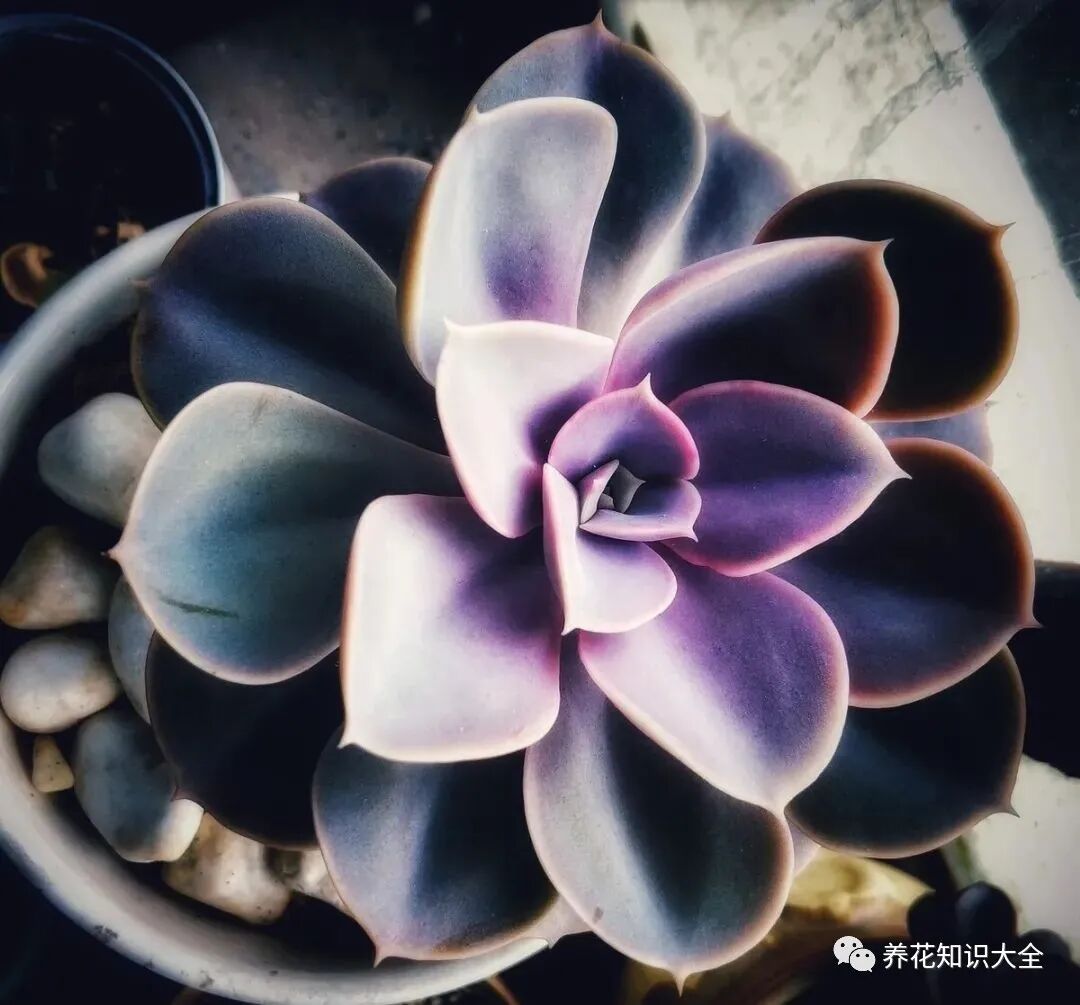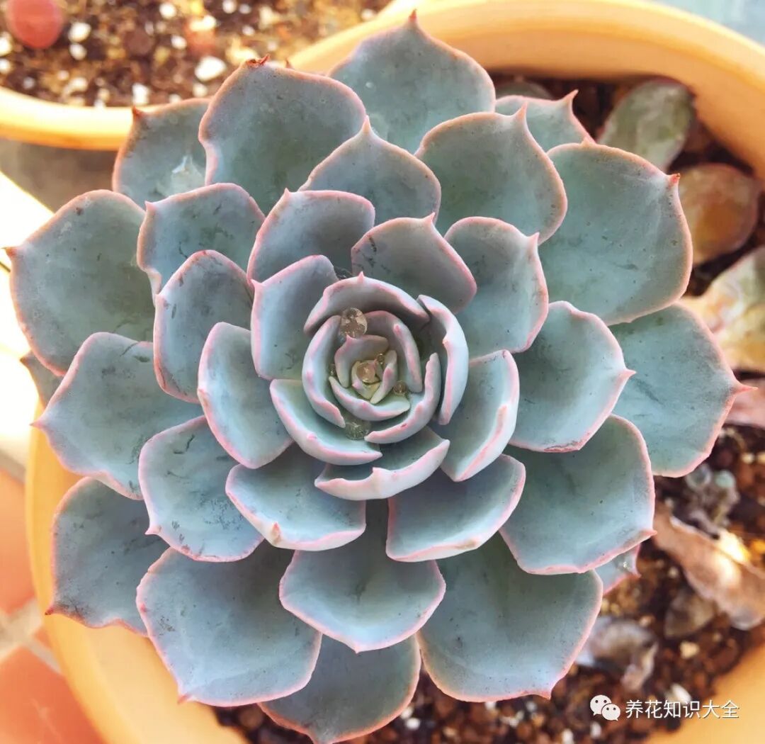 多肉植物蓝石莲是花友很喜欢的大普货之一,非常皮实好养。蓝石莲的叶子本身就是带一点蓝色的,所以就算在雨水多的季节,也是呈淡淡的蓝色,给人一种比较高贵的感觉。秋天的蓝石莲适当晒晒,蓝色就会变深,极容易上色。