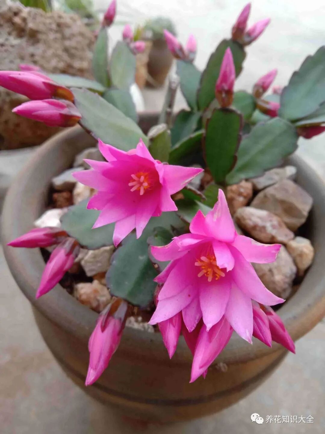 蟹爪兰也是秋天开花的花卉,开花后枝叶和花瓣会包围住整个花盆,垂直向下生长,花瓣紫红色的,开花后,可以用棍子支起来,能达到一层一层的效果,是许多花友家里的常见花卉。蟹爪兰的花期正好在十月份,马上就能养到开花期了,能开到下一年的2月份,熟悉蟹爪兰的养花大神,室内种植的话,还能用给予的光照程度不同,可以调整它的开花期。