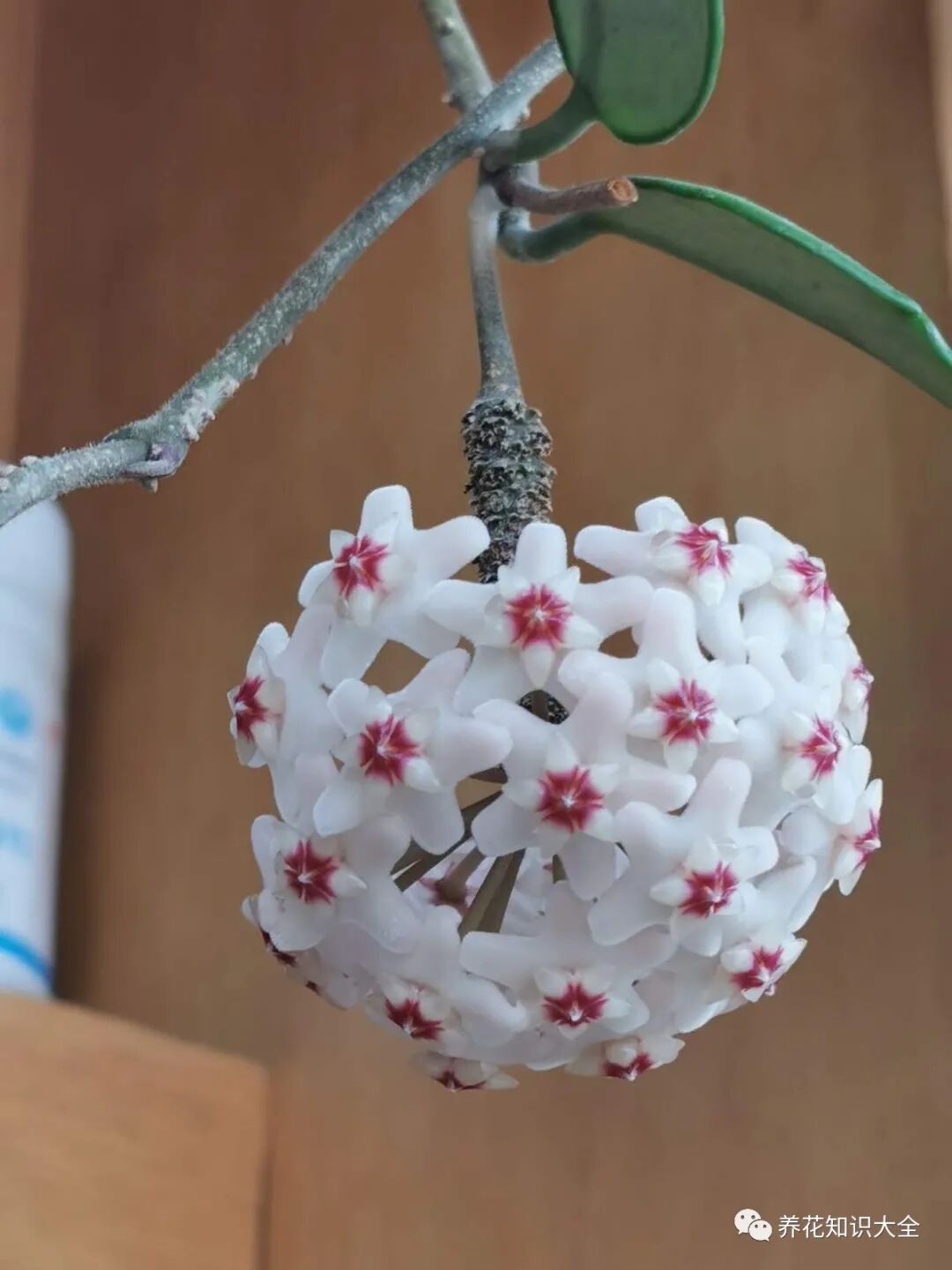 要是花友在花市看到球兰,别犹豫,放心入手就对了!球兰的花瓣毛茸茸的,小小的五角星,样子特别可爱,美得像假花一样。没到开花的时候,可以悬挂在窗户边上,它的绿叶会垂直长下来,也很有观赏价值开花后能抱成一个球。现在开始养,就能收获一大长串绿叶和花苞,等到来年四月份,花期一到,悬挂的球兰叶子油亮发绿,花伞一个个争相开放,别提有多美了。
