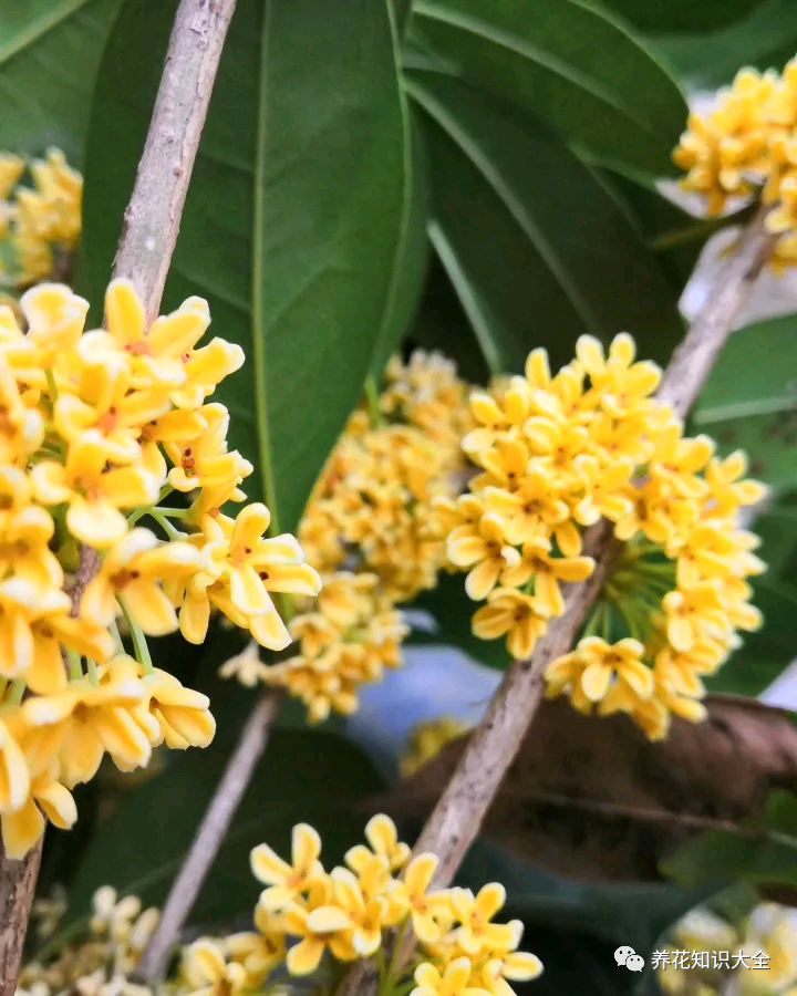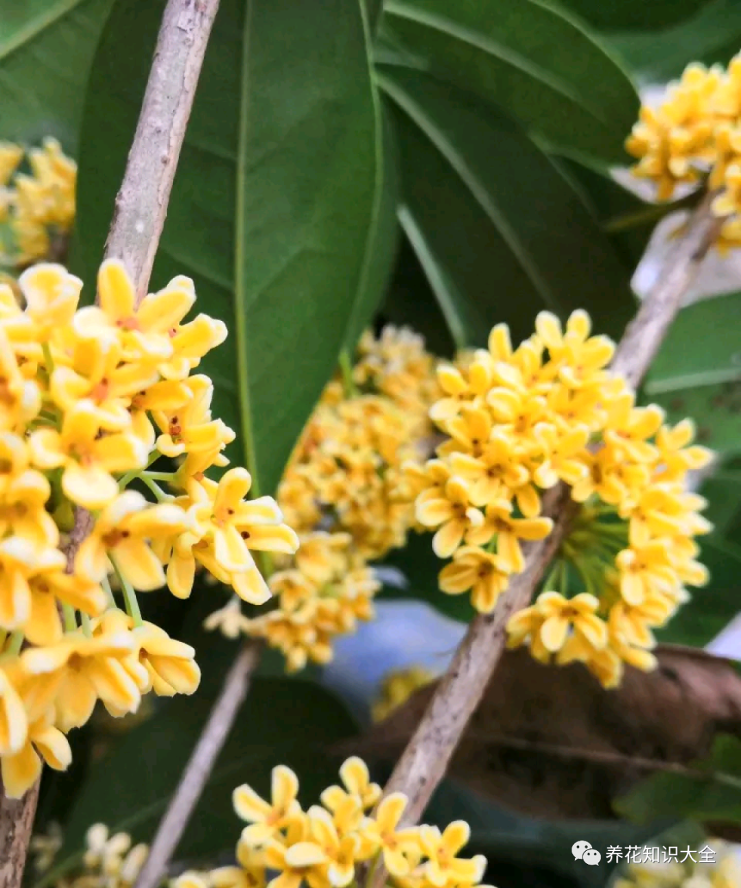 桂花金黄的颜色也证明它,很需要阳光的照耀,现在阳光没有那么灼烈,可以一直放在窗台或者客厅能晒到阳光的地方。除了栽种时的基肥可以用固体的粪肥以外,生长期用不同营养的液肥。