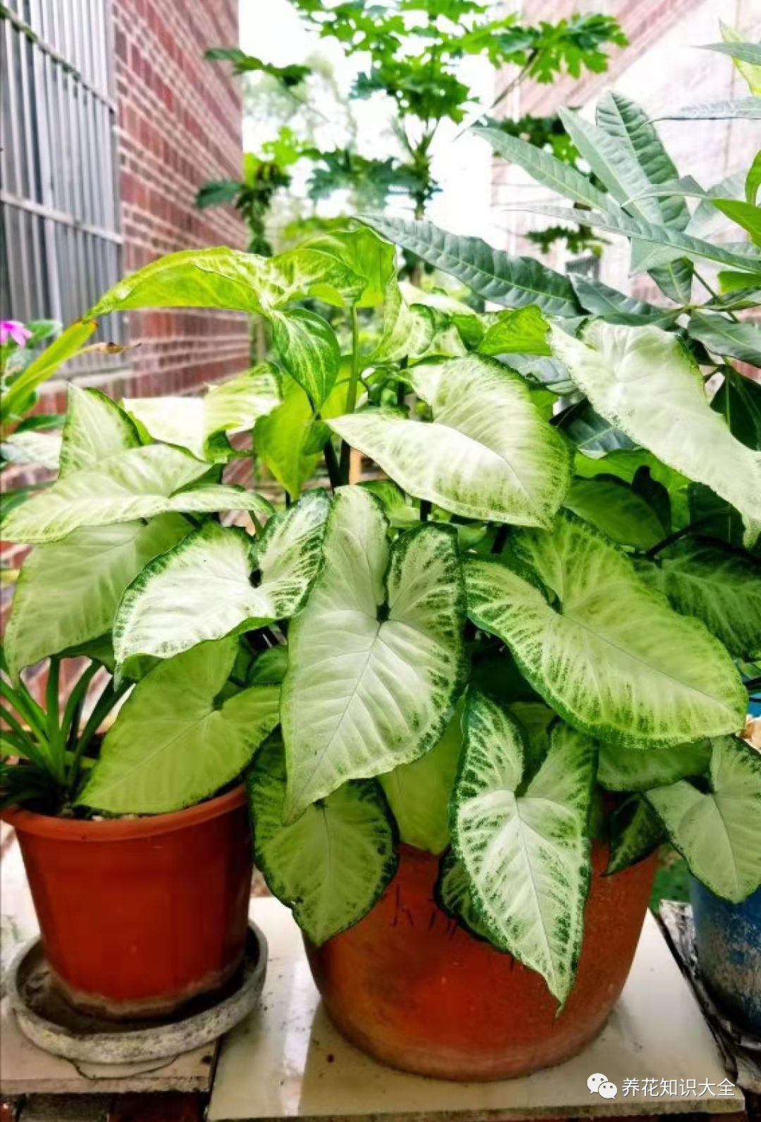 合果芋就像是白绿色的彩叶芋,叶子看起来一样好看,叶子舒展的也很大气,使人看了心情都会舒畅。给合果芋浇水需要慢慢浇,并且要多浇,不造成积水,让土壤时刻保持微微湿润,就是最合理的浇水方式。合果芋也很适合水培,在水里也很容易生根,平常注意日照,保持在能接受到散射光地方就好。