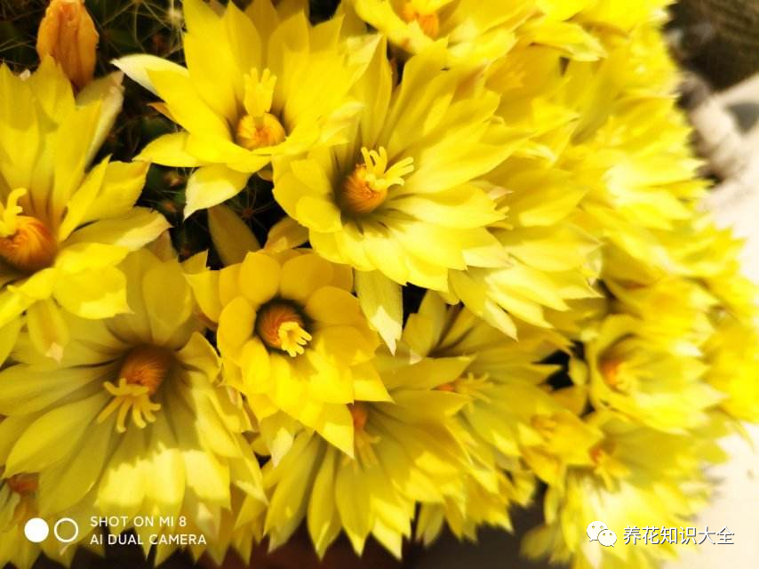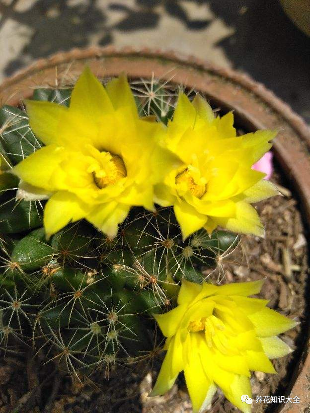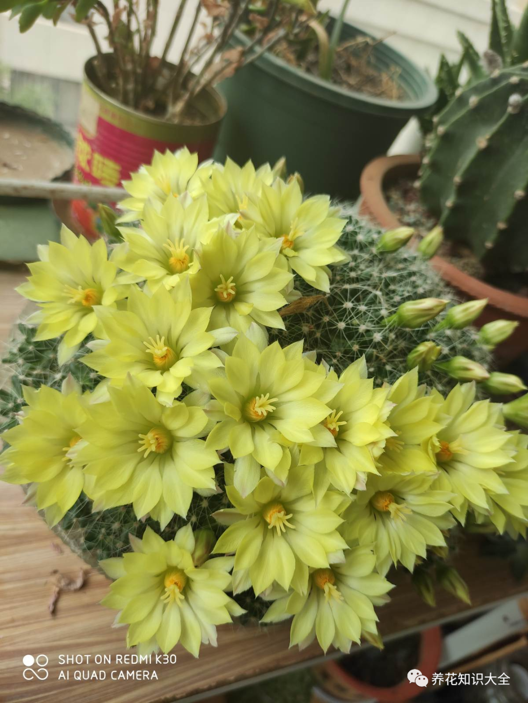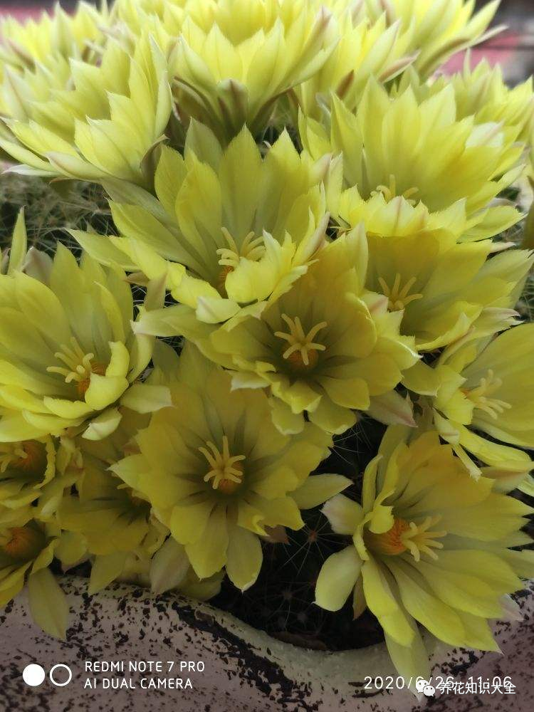 图片中开花特耀眼的仙人球,名字叫金星,是不是花如其名呢?金黄色的如同一颗颗璀璨的明星,在花盆里绽放,实在是让花花喜欢的不得了!