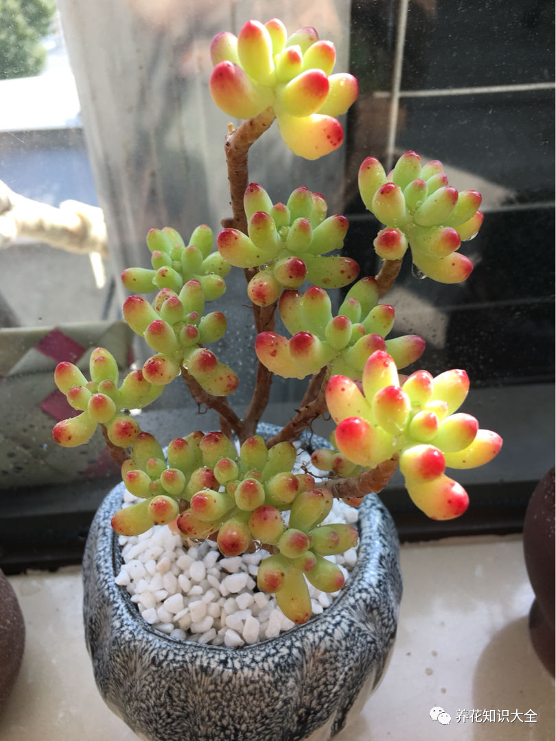 家里面要是有南阳台的话,大家完全可以养果冻乙女心哦~春天的光照更舒服,晒晒对多肉上色有好处。