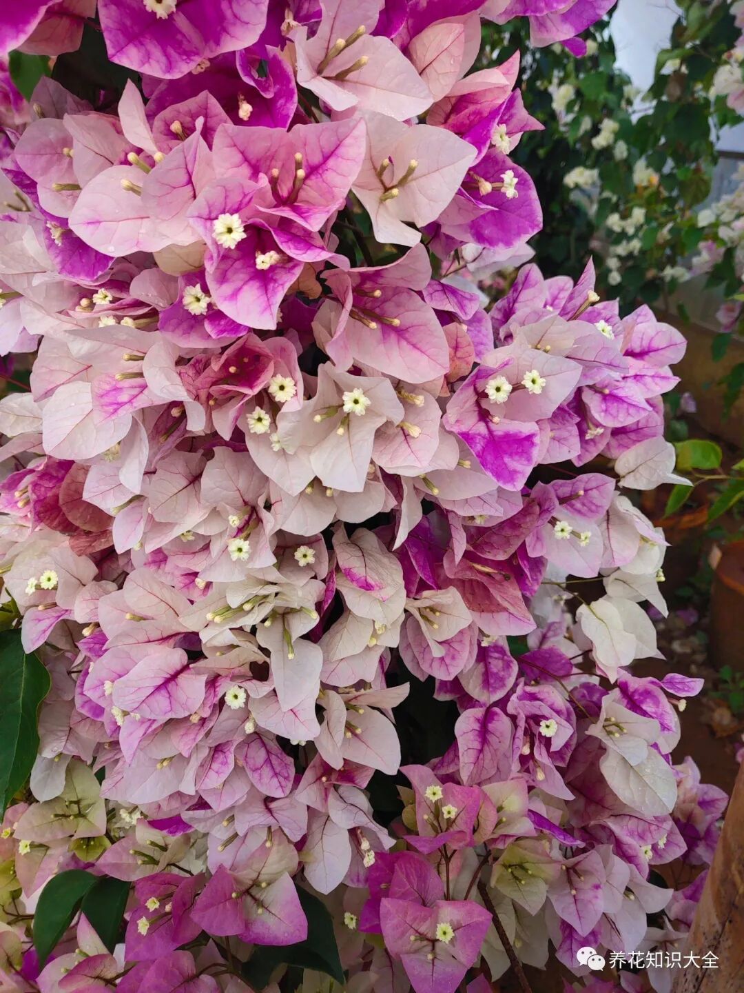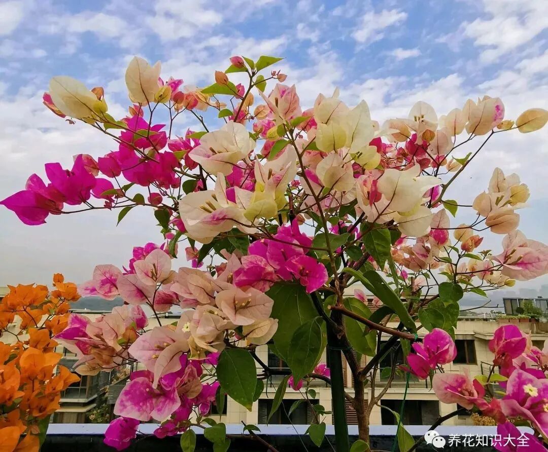 有一次他出差差不多一个月,回来以后阳台的月季真的没眼睛看,虽然家人帮忙浇水还活着,但又是红蜘蛛又是白粉病,零零星星几朵花,也都开的残缺不全。从那个时候开始,他有了出月季坑的想法。在一个花友群里吐槽月季的时候,有个花友说阳台光照好可以养三角梅,特别少病虫害,还晒出了自己阳台三角梅盛开时的样子。