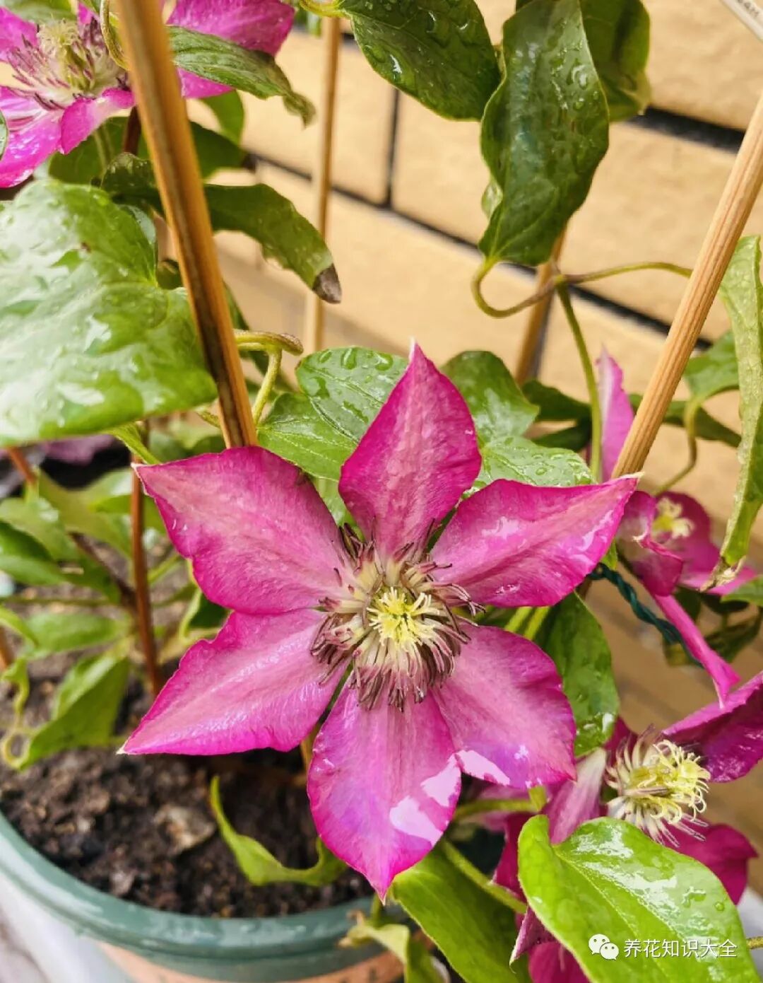 草本铁线莲到了秋末冬天的时候,地面部分会全部枯死,枝干一折就断,一点生机都没有。有些花友遇到草本铁线莲地面部分干枯,就以为整株枯死了,实际上它们这是“假死”,别整盆扔掉,否则就亏大了。草本铁线莲是在新枝上开花,每年地面部分都会干枯,春天重新发芽生长。比如很多花友喜欢的如古,就是这样的品种,还有粉蝶、舞姬等,都是草本的。