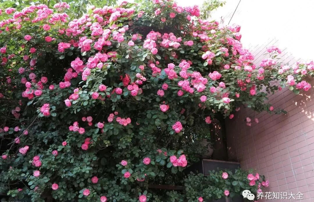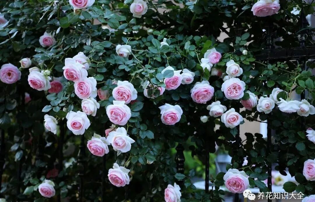 大型藤本月季粉色龙沙宝石抗病能力比较好,叶子肥厚翠绿,生长速度快,单季节开花,花朵大小中等,花色很仙,光照不足或者光照过强时,花色都可能偏白。因为粉色龙沙宝石是单季节开花(有些可以开秋花,但秋花量很小),所以很多花友都纠结到底种不种。地方足够大,建议种一棵,春天的花量真的超级巨大。地方不够大,那就最好选择多季节开花的品种。