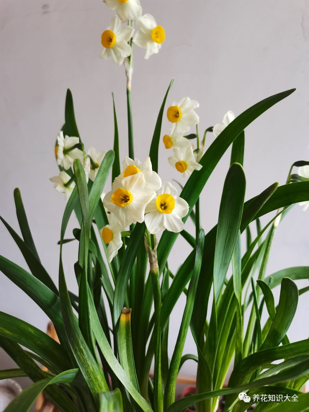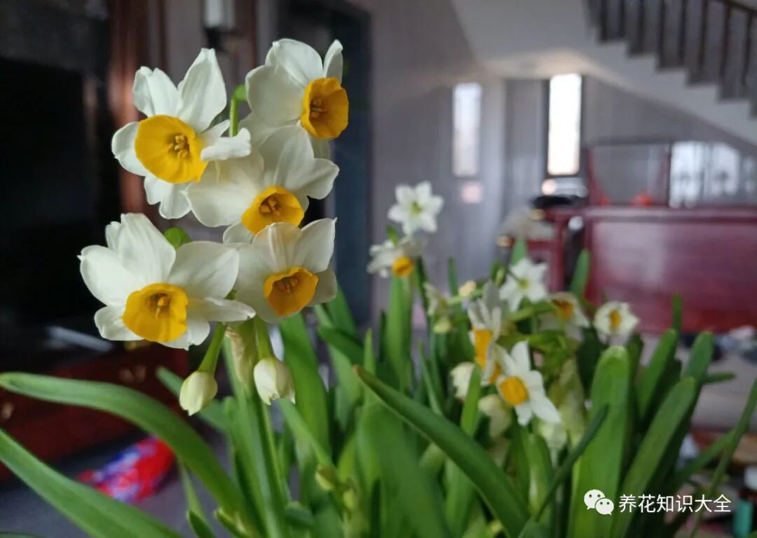一年中的大部分时间,水仙花的花盆里都是只有细长的叶片,而到了冬天,当许多植物都开始落叶枯萎之后,水仙花才开始绽放。需要注意的是,虽然水仙花比较耐寒,但是它也是一种喜欢光照的植物,所以说即使是在冬季也要将它放在室外多晒晒太阳。