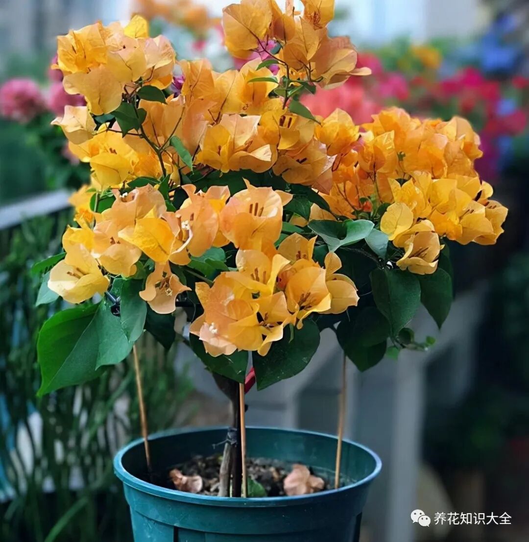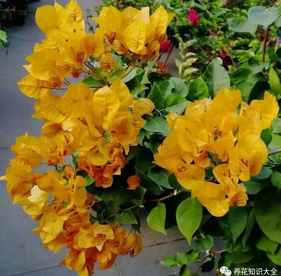 三角梅加州黄金是勤花品种,养护得当可以四季开花。加州黄金刚开的时候颜色不是太鲜艳,越开越好看。因为开花太勤,加州黄金的生长速度略微慢一点,如果想让植株快速长大,可以稍稍减少光照,勤施复合肥。