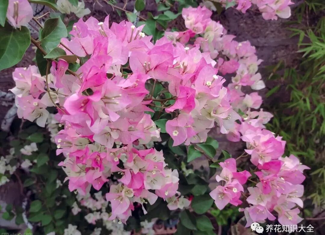 水红三角梅是勤花品种,也是养殖最多的一种,养护得当它可以四季开花。水红三角梅的颜色随着季节转移可能会有轻微变化,比如温差大、光照强的时候,颜色深一点,温差小、光照弱的时候,颜色浅一点。