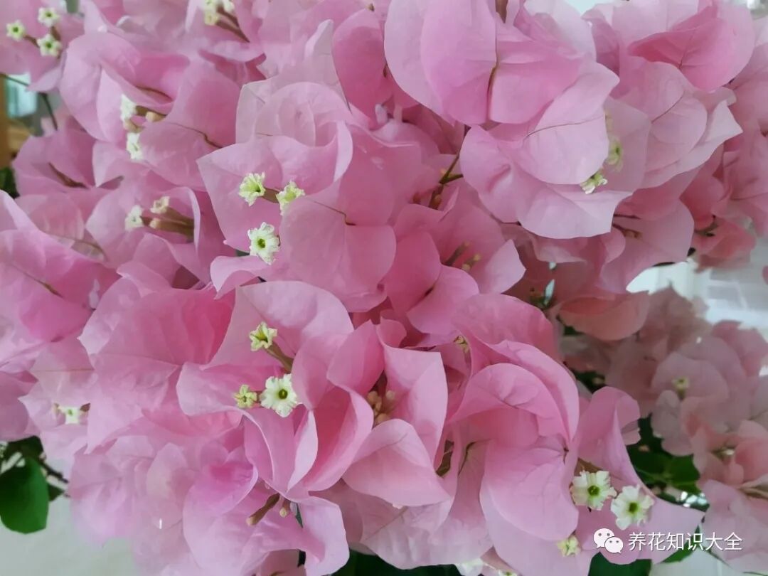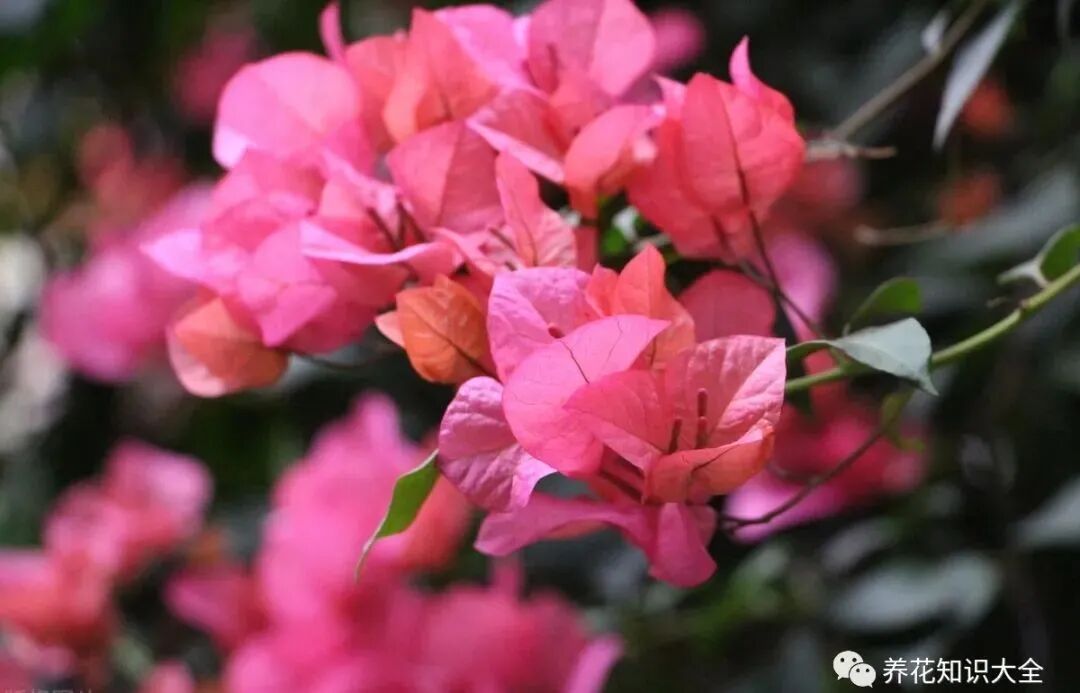 三角梅红粉佳人是勤花品种,养护得当可以连续不断的开花。红粉佳人花量巨大,很容易开成大花球。红粉佳人在光照不足或者养分供应不足的时候,花色偏淡一点。光照养分都很充足的时候,花色就很仙。