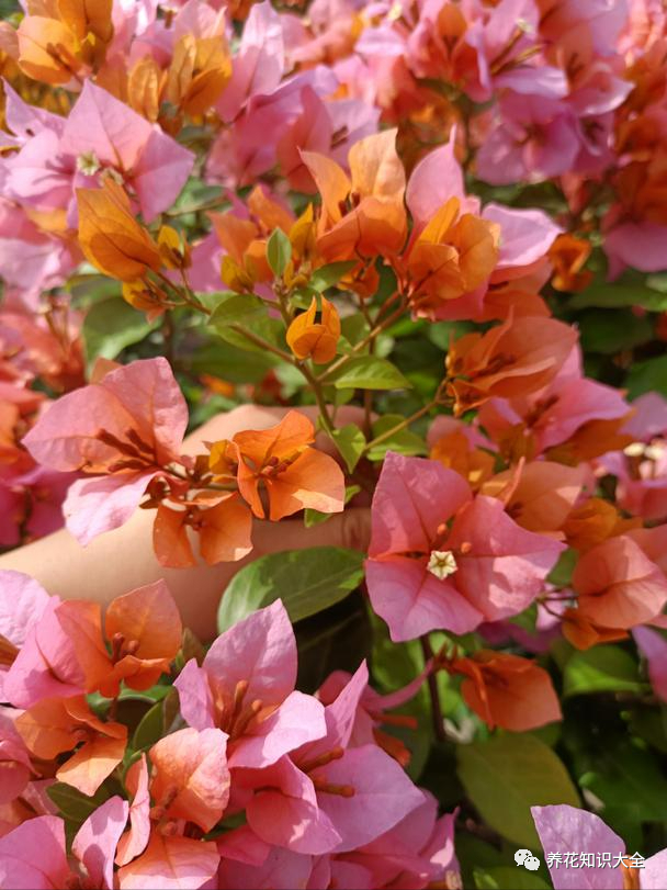 洒金类的三角梅有洒金橙、洒金粉等,是勤花品种,养护得当可以花开不断。洒金类的三角梅观叶也是极好的,但叶子上的斑点有人养的比较明显,有人养的不太明显,应该跟养分供应和光照等因素有关。