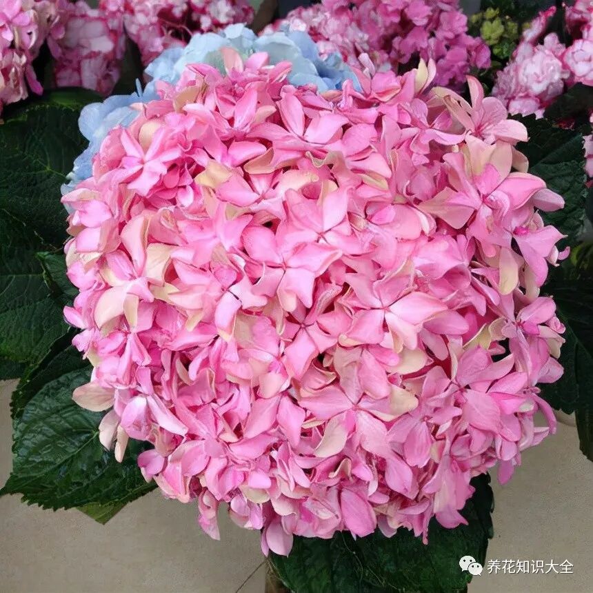 绣球是典型的南方植物,特别喜潮湿喜水,所以水分充足的土壤下养出来的绣球花,植株一看就和一般的不一样,显得尤为健康,枝繁叶茂,花朵艳丽娇嫩。