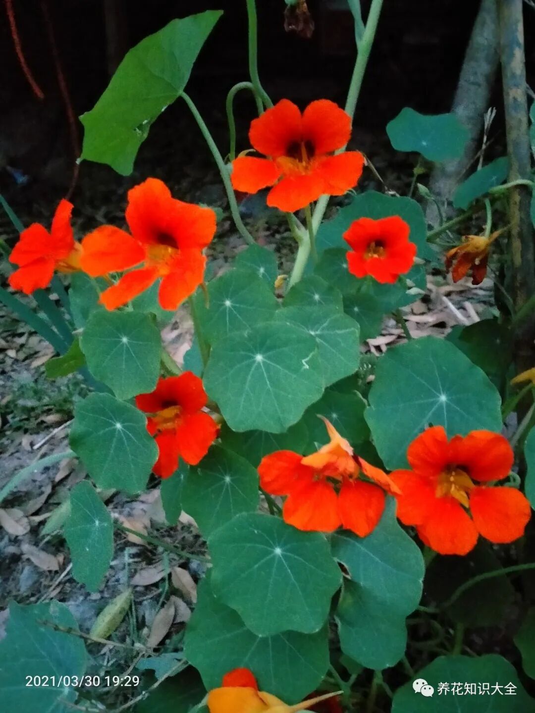 旱金莲与马路边的牵牛花还蛮像的,为多年的半蔓生或倾卧植物,开花呈橘红色,很漂亮,旱金莲蛮适合在室内种植的,只需要一株就能长出很多花朵,格调瞬间提升不少。