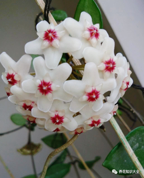 球兰开花的时候非常茂盛,很爱攀爬,种几朵就可以爬满墙,球兰在开花之后,会形成一个个的花球,特别好看,它的名字也因此而来。比起盆栽,球兰很适合种在庭院里,开出的花朵很大,开花节节高,感觉家里也能变花园,要是养在院子里,瞬间就可以提高整个庭院的格调,从很远处就能够看到球兰盛开的景象。