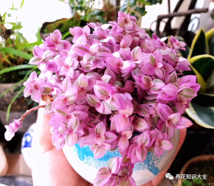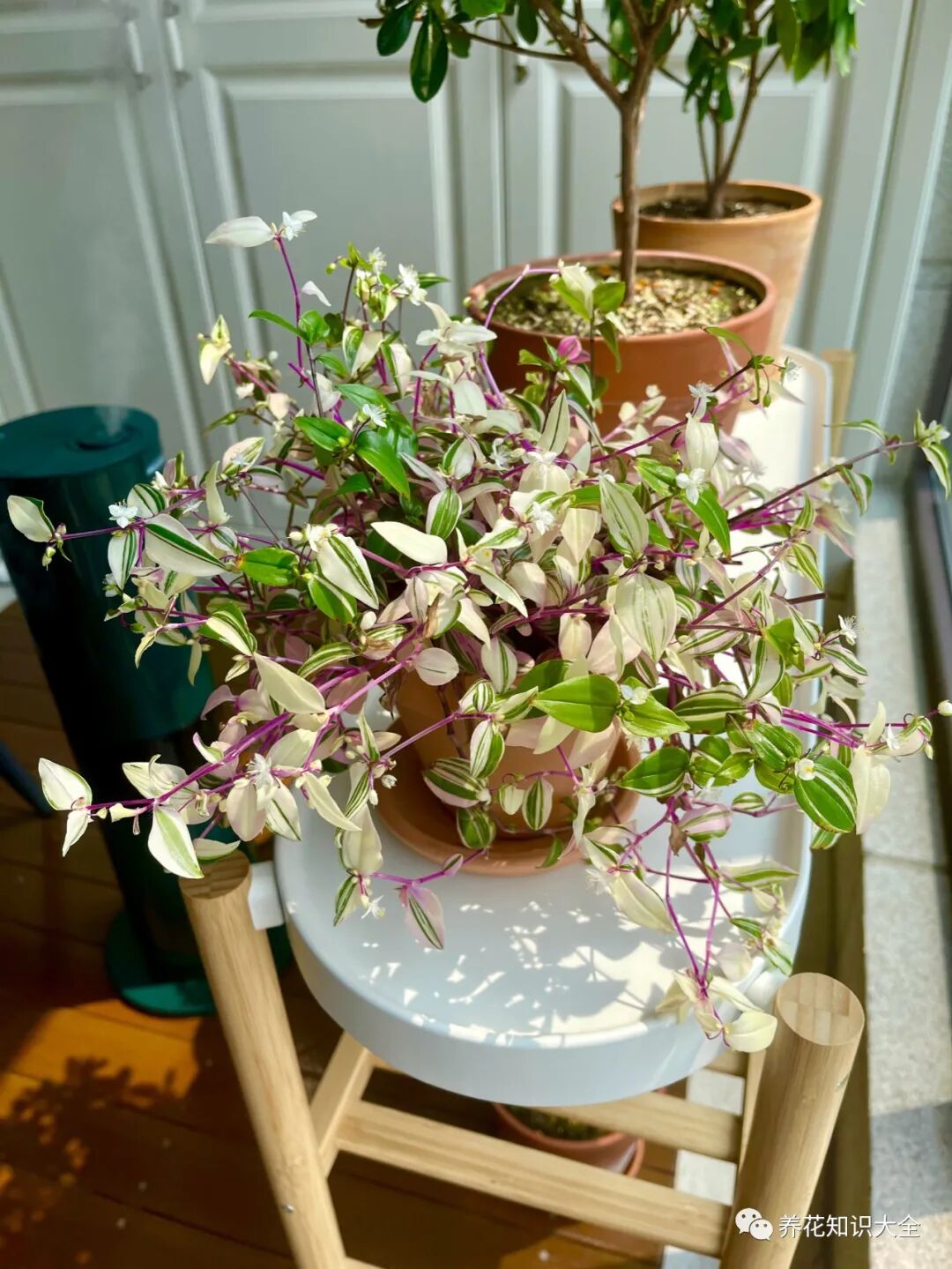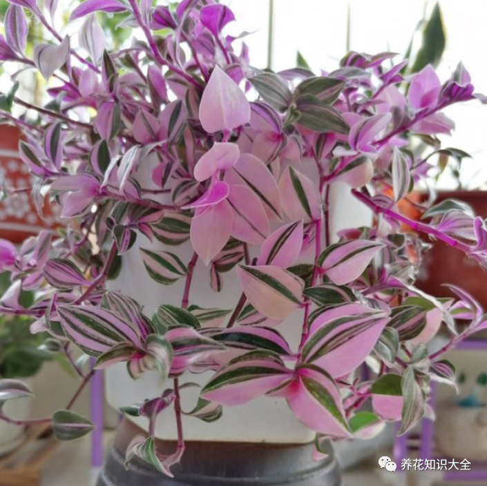 婚礼吊兰的养护方法也超级简单,基本上和普通的青叶吊兰差不多,对土壤和水分的要求都很低,只要盆土干了及时浇水就可以了。不过充足的光照还是少不了的,这样婚礼吊兰的叶片才能始终保持浓郁的粉紫色,光照不充足就会变回绿色的哦!