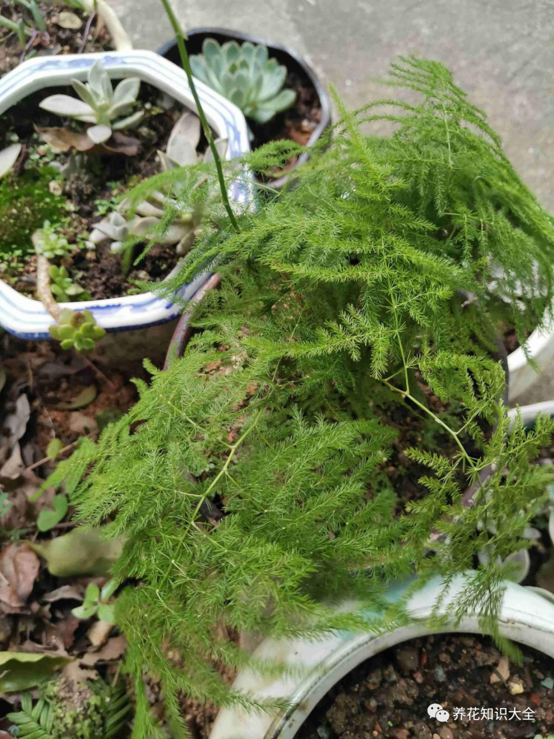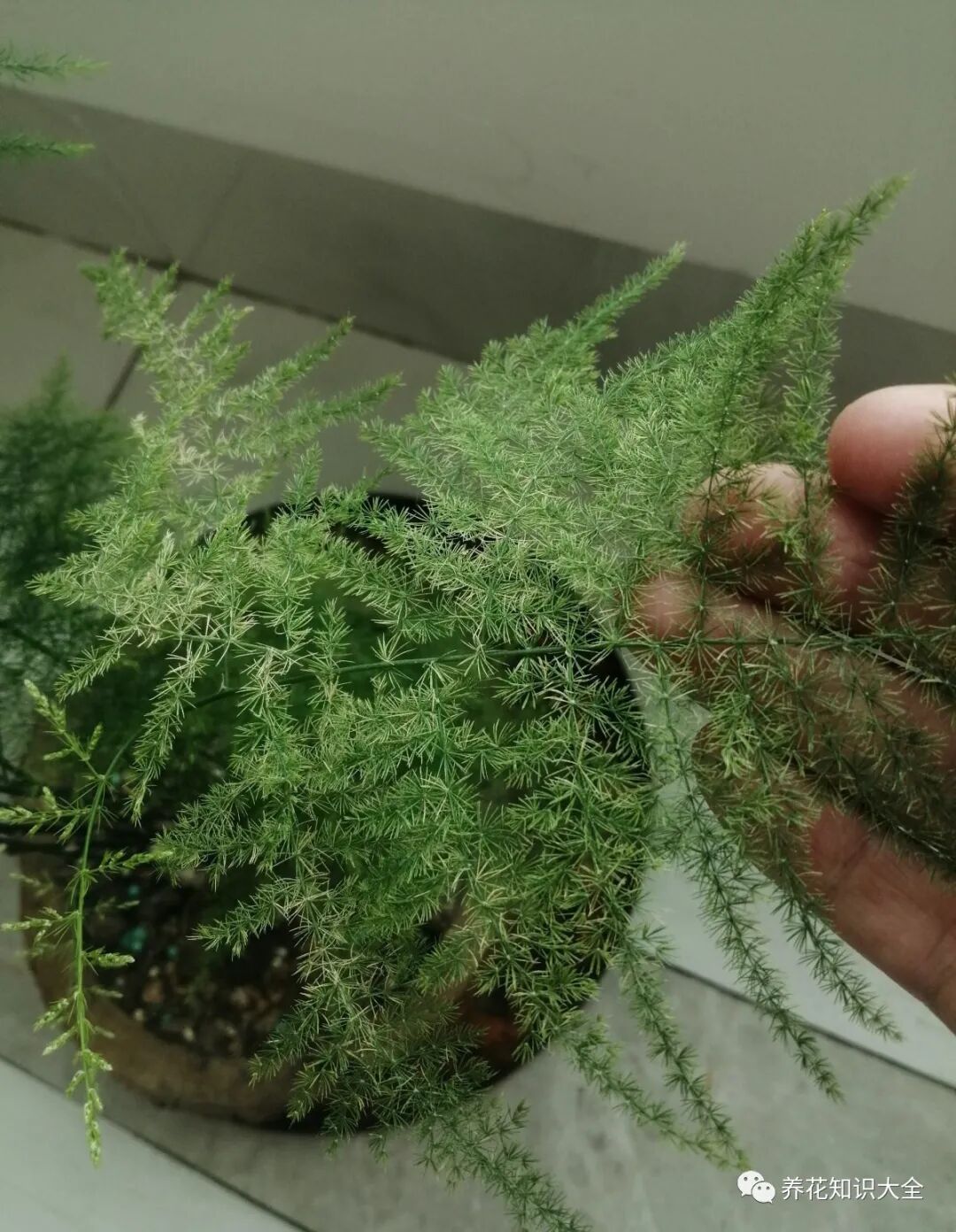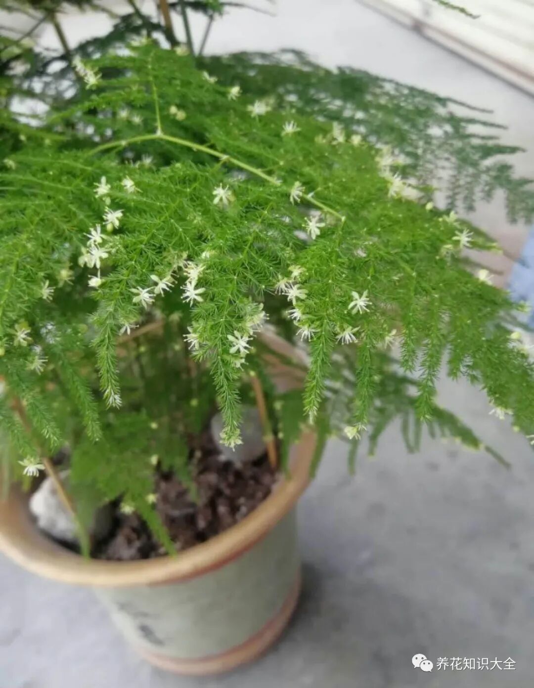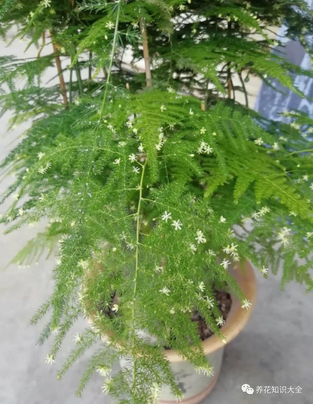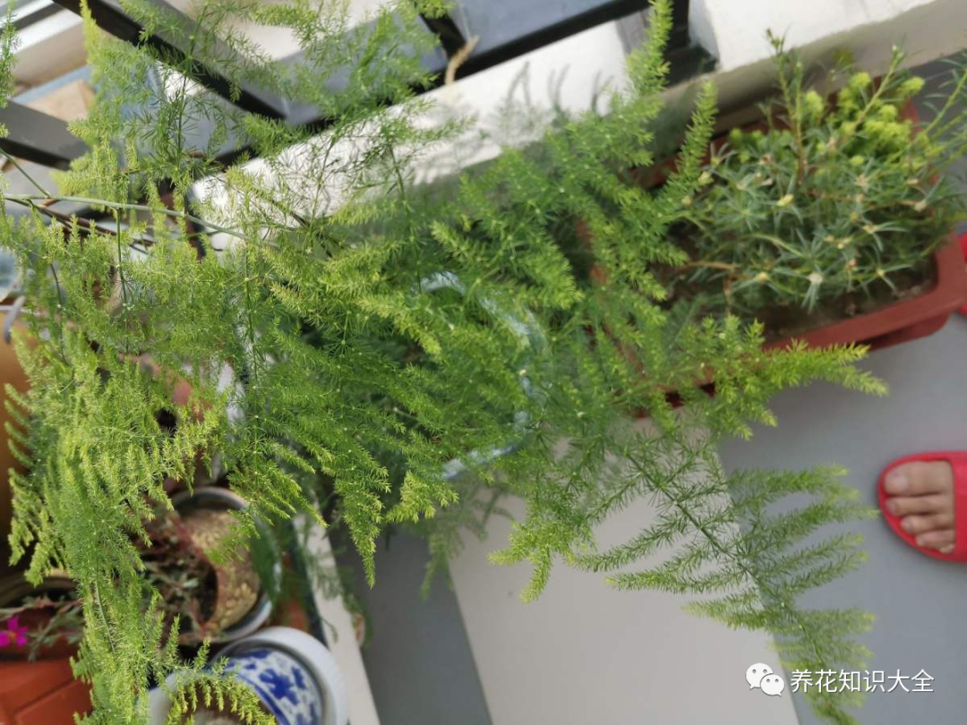 文竹还有一个不为人知的秘密:就是运输水分很慢,浇水一定要及时否则很容易黄叶、掉叶,所以文竹特别害怕干旱和土壤板结,另外它怕化肥,如果有条件的,最好使用羊粪,羊粪是最适合它的肥料。