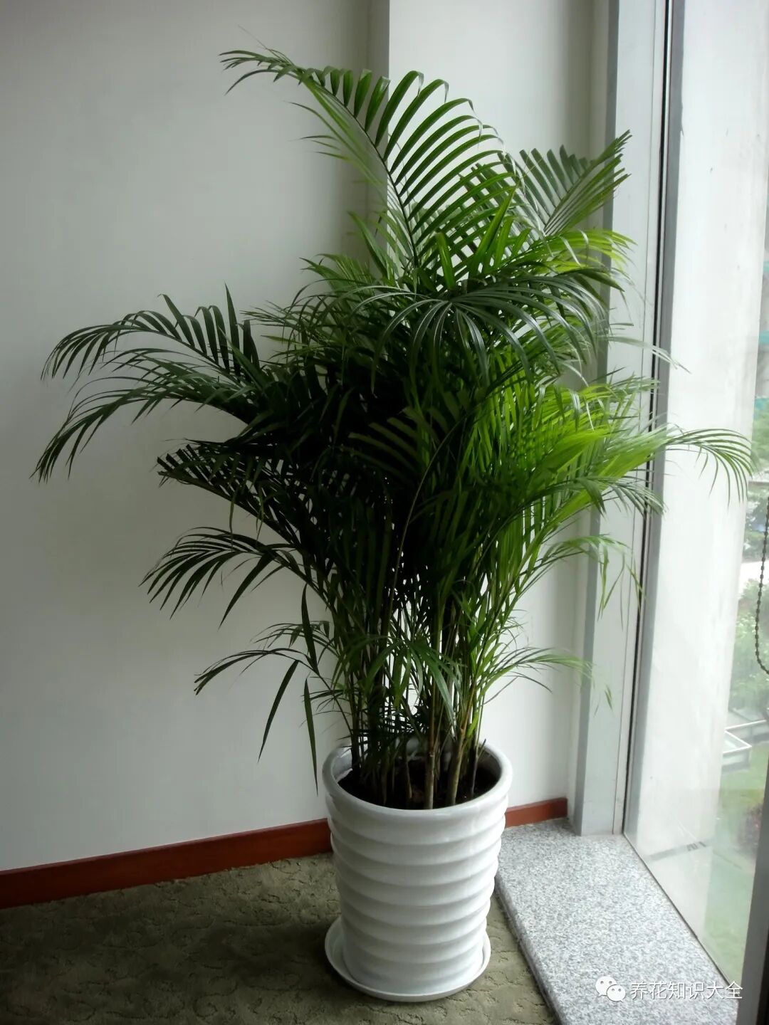 散尾葵喜欢半阴的生长环境,客厅养它,养在门或者窗户边,就能很好的生长。因为散尾葵蒸发能力强,所以天气热的时候要勤浇水,防止会干旱到。但“勤”也要有个度,盆土六七分干浇就可以了,不然也会烂根。而在温度低的时候,就一定要给散尾葵控制浇水,水太多根系腐烂,就黄叶烂叶了。