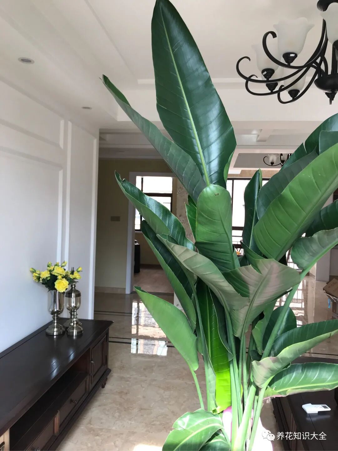 客厅养观叶鹤望兰,不要摆放在太过阴暗的地方,最好放在半阴或者有散射光的地方,这样叶色翠绿,长势好,叶子比较挺拔。客厅养观叶鹤望兰,应该勤通风。有些花友家的鹤望兰养一段时间就黄叶,整株枯死,很可能是通风不好,盆土没干就浇水导致的。观叶鹤望兰很少会生病虫害,省心又美丽,没有理由不喜欢它。