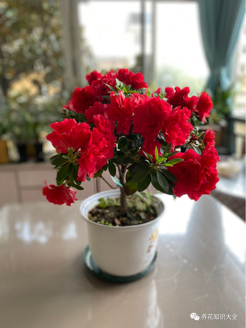 如果家里环境特别干燥,这种情况下可以准备一个托盘,里面装满水,花盆垫高放进去,注意盆底不要接触到水面,这样也可以增加周围空气的湿度,杜鹃花逐渐适应家里的环境,自然就能开花了。