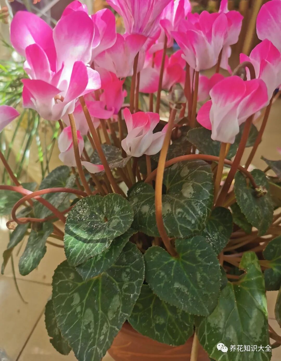 仙客来枝叶茂盛、花朵繁多,对水分的需求较大,但大家注意浇水的时候,千万别把水浇到它的叶子和球根上,否则很容易烂叶烂球。