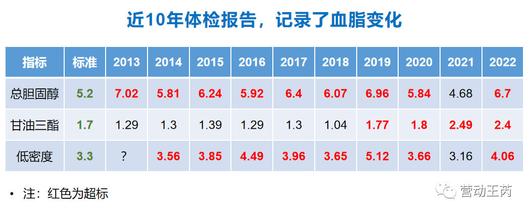 我要来她过往的体检报告,一看,天啊,她的血脂已经连续高了10年了!