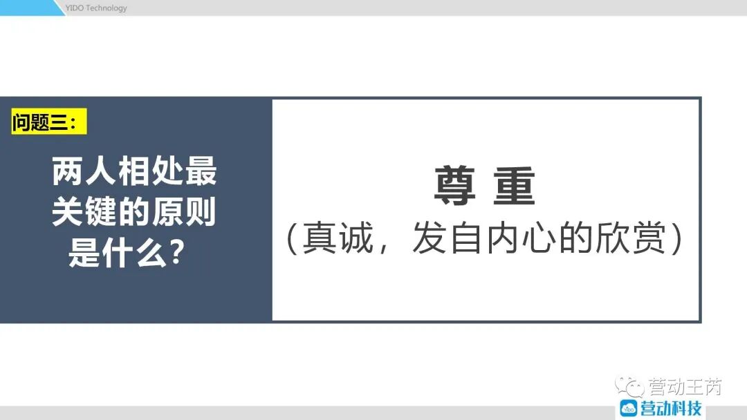 问题三:两人相处最关键的原则是什么?答案是“尊重”,真诚相待,发自内心的欣赏。