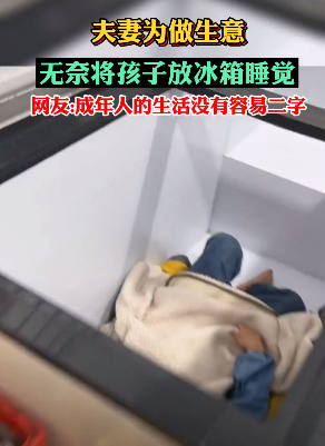 孩子困了,只能把她抱进空置的冰箱里,让她在里面睡觉。