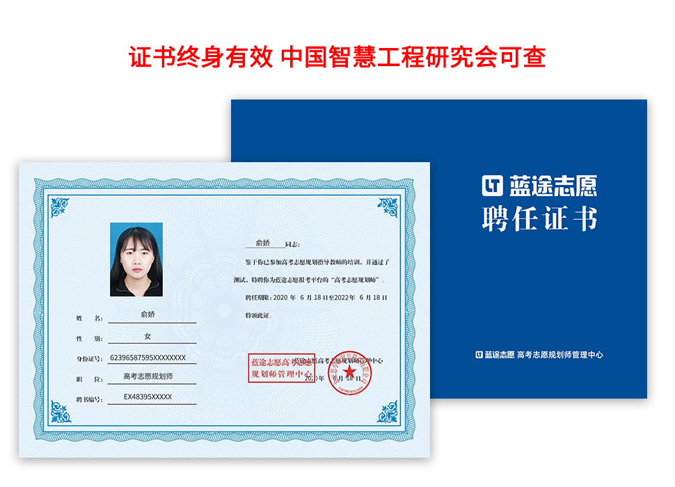 2.证书终身有效,取证后可直接聘用成为全职/兼职咨询师,免费入驻志愿填报平台。