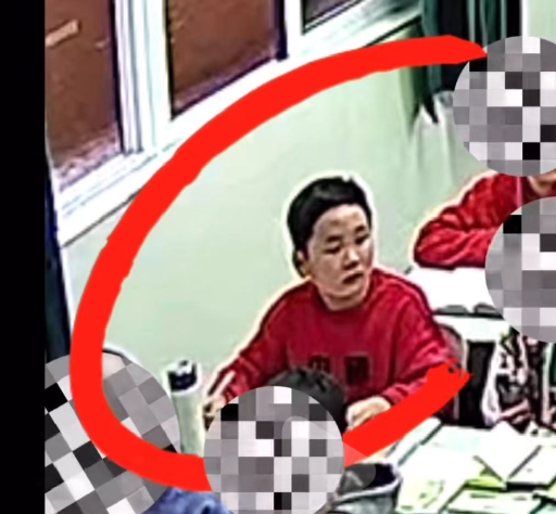教室监控拍到,下午第二节课时,宽宽开始对窗外发呆,同桌拍他,他才回过神。