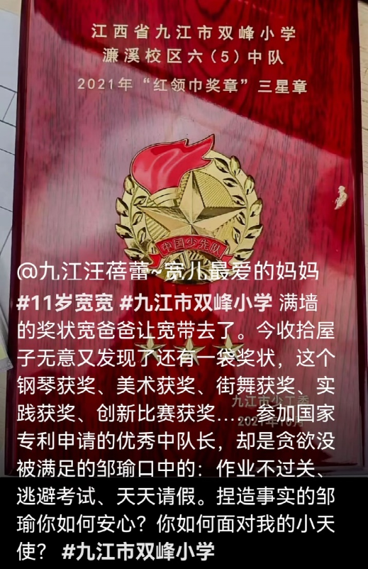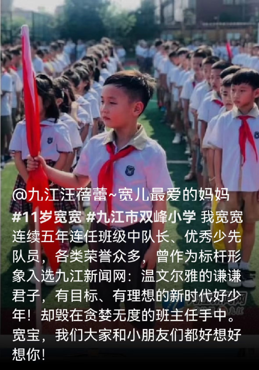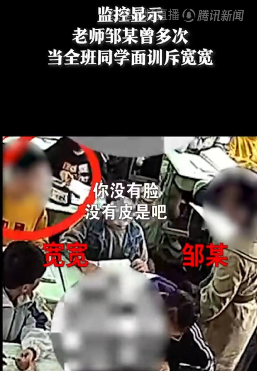 后来他们发现,在宽宽自杀前几天,邹老师曾多次把孩子叫去办公室批评、罚站、惩罚性换座位……