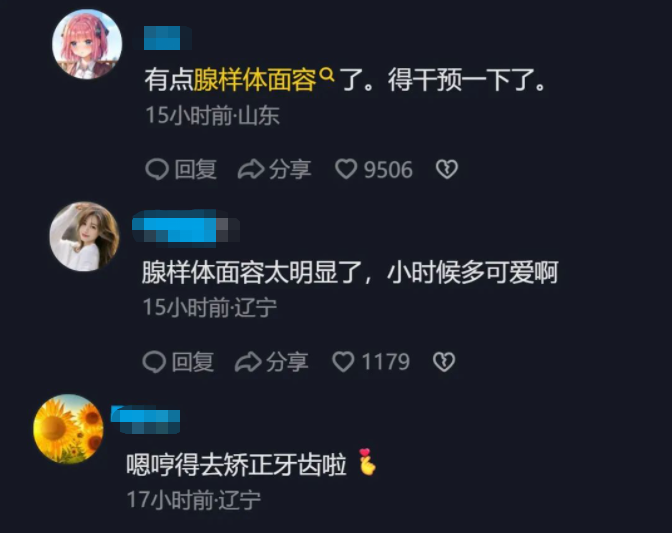 也有人说:“整牙是不够的,嗯哼都有点腺样体面容了,一定要尽早去医院治疗。”