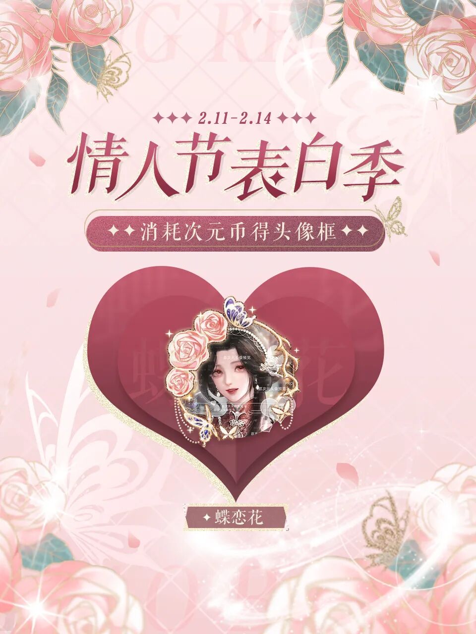 - 领取方法:活动期间,任意一天消费【200】次元币即可获得「蝶恋花」头像框(永久)。