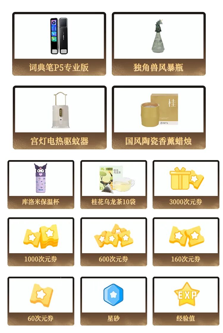⑤ 每为角色赠送30星光,可得1个碎片,使用10个碎片可在<月光宝盒>抽1次奖,100%中奖!