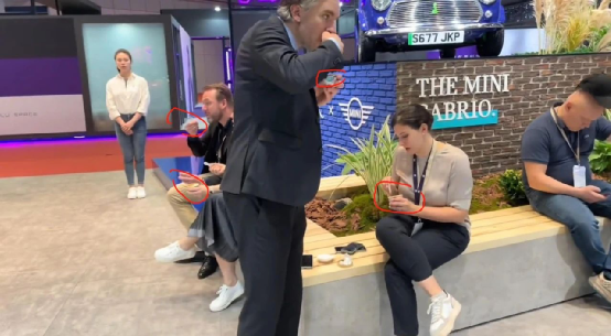 宝马展台旁边,全是坐着享受冰淇淋的人。