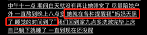 凌晨四点,小满终于说了句“我现在要睡觉”,妈妈却直接撒开女儿的手,很大声地:“啊?”