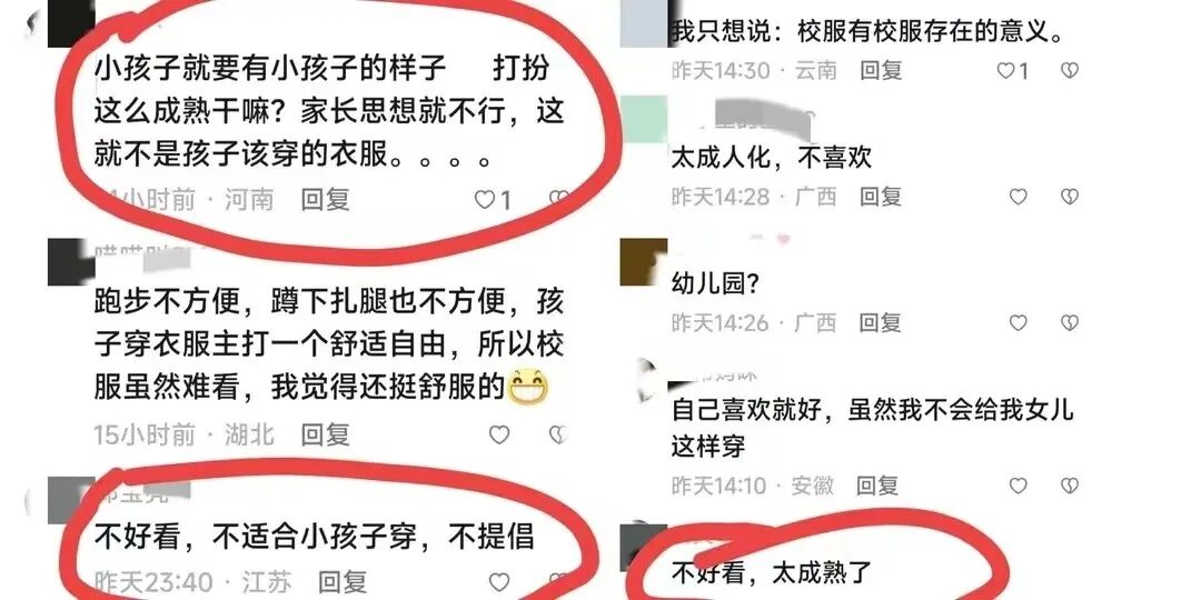 那么问题来了:这个什么样的衣服是谁定义的?小孩就应该穿那些充满卡通图片,所谓童真的衣服吗?那最近流行的所谓“纯欲”风难道不矛盾吗?