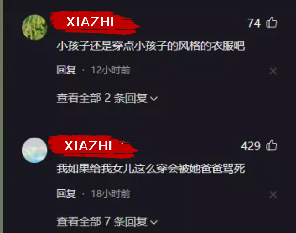 有网友提醒这位母亲,孩子这样打扮太过于成熟,还是让孩别穿太性感,不然容易导致孩子早熟。