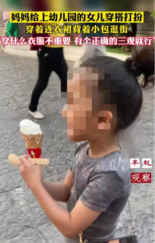就从小女孩这身穿搭可以看出,她们的家庭条件不会太差,而这位宝妈说的也对,三观才是真正重要的,说明她们的家庭教育并没有问题