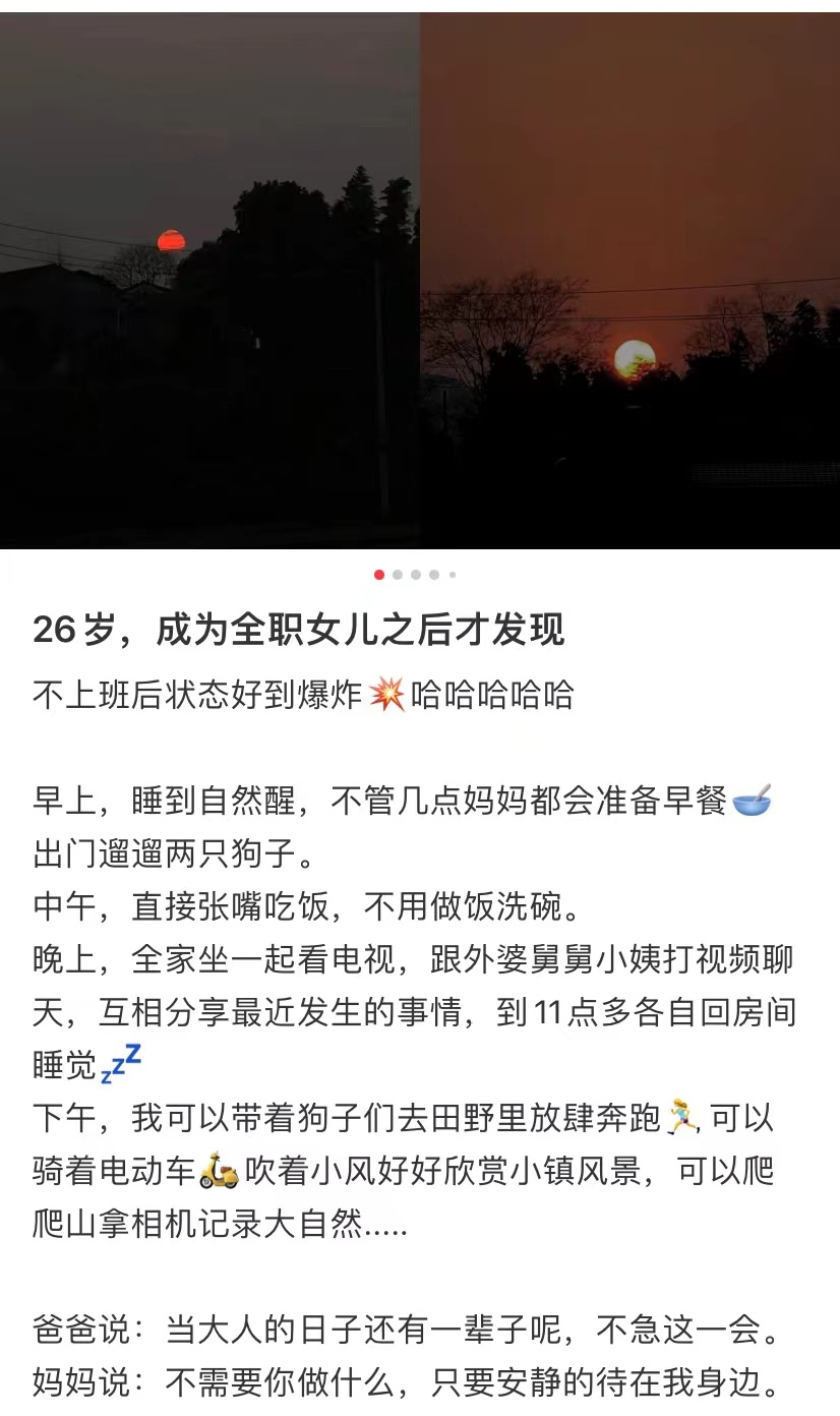 相反,我们要看到,全职女儿“躺平”的背后,本质上的焦虑。