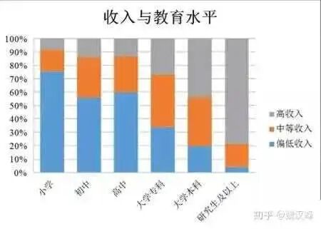 理由是统计了各学历层次的收入对比。然后发现,大学毕业人群收入,要远高于中小学毕业人群收入。