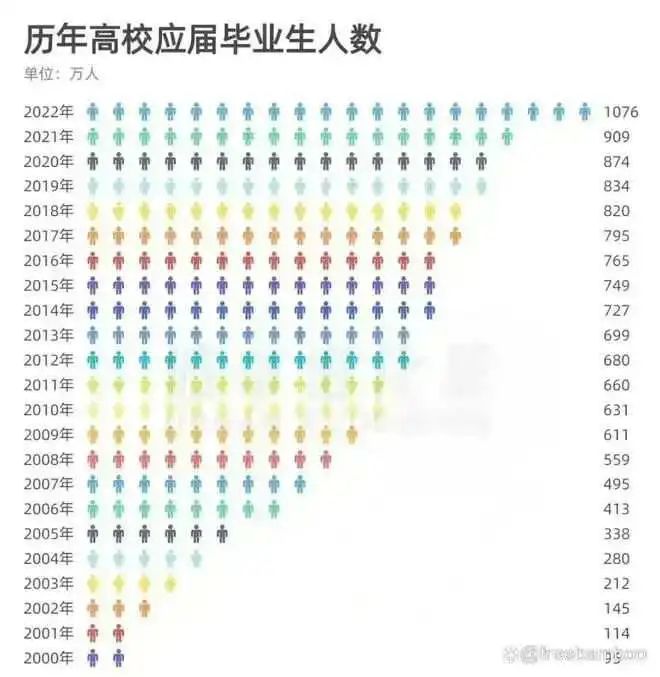 而去年大学应届毕业生却有1076万。