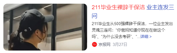 “211毕业生裸辞干保洁。”