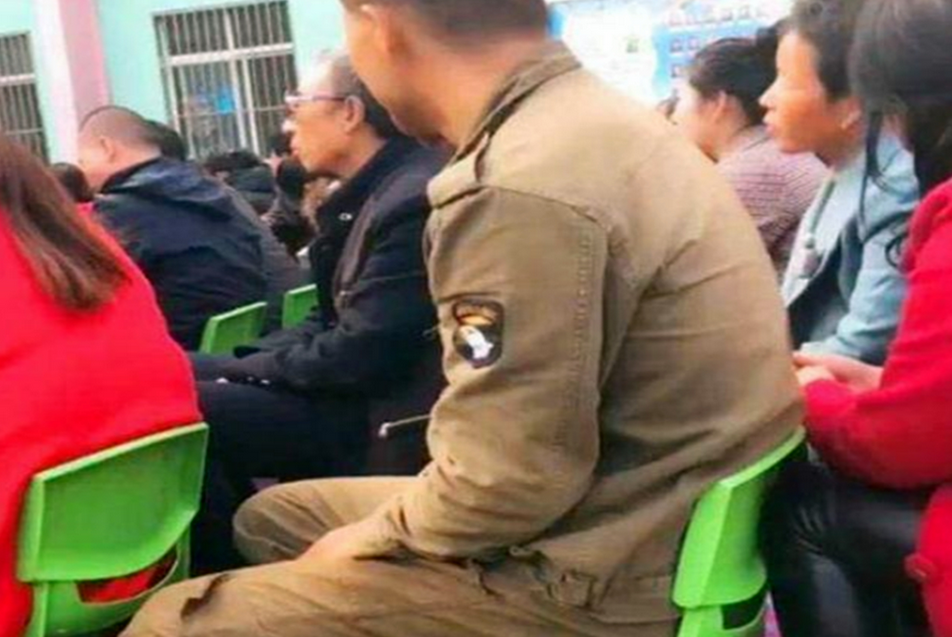 可能由于着装的问题,周围的家长对这位穿着工作服参加家长会的爸爸颇有些“敬而远之”,甚至是频频侧目,交头接耳表示“穿成这样来参加家长会,咋不为孩子考虑考虑呢”?场面一度显得有些尴尬。