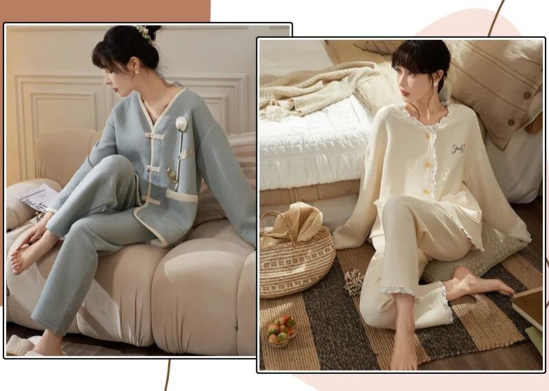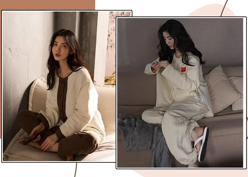 空气棉材质的厚睡衣看起来十分轻盈,但是保暖性却一点不输!